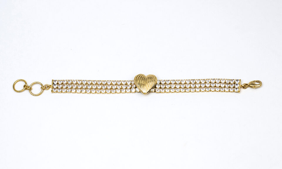 Brazalette con dos corazones mini, elaborado con baño de oro