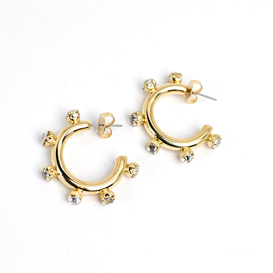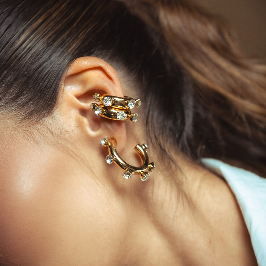 Hoops large engastes + piedras blancas, elaborado con baño de oro