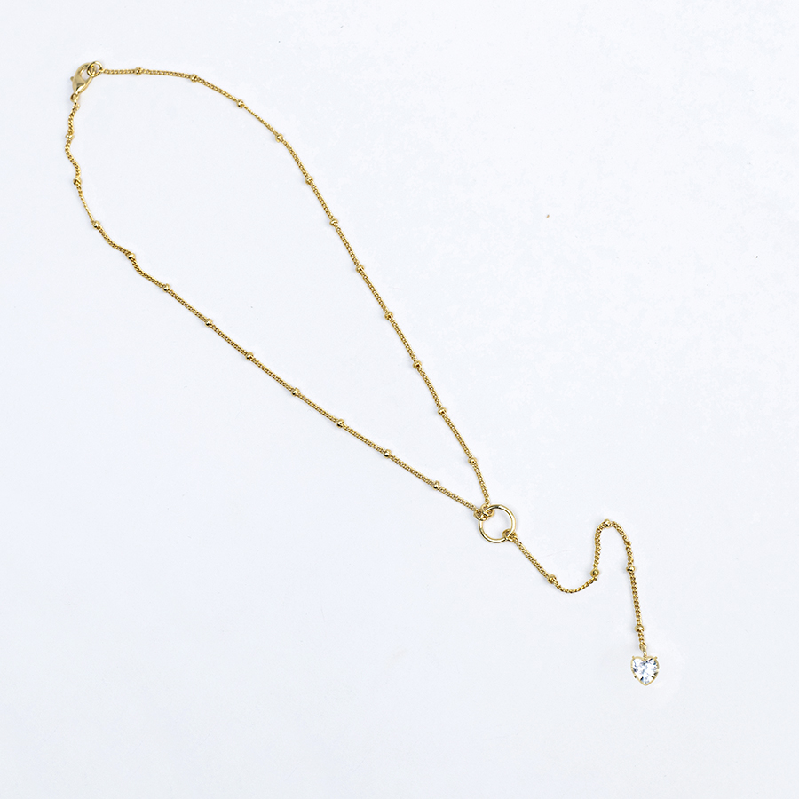 Lariat de 29 cm + corazon de zircon, elaborado en baño de oro