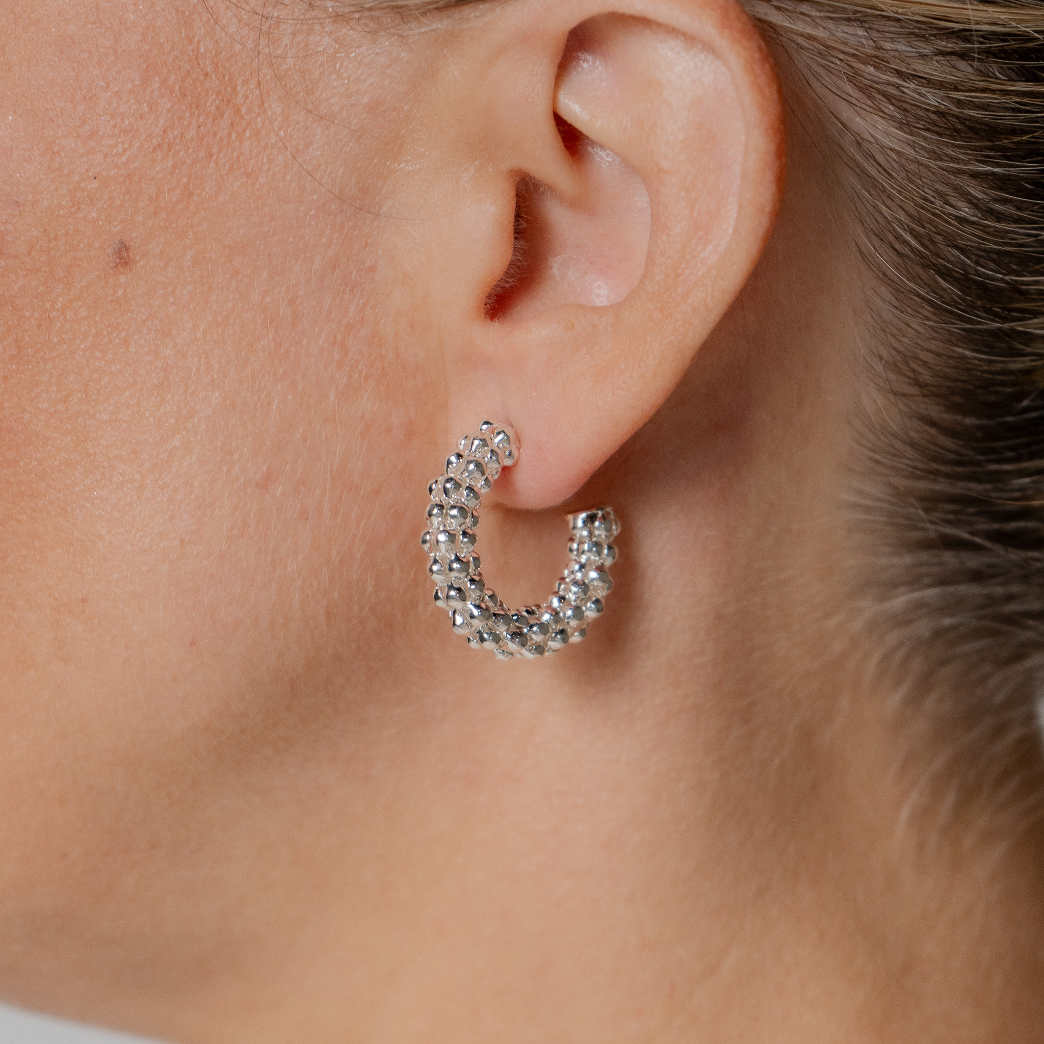 Argollas texturizadas, elaborados en Brass con baño de plata