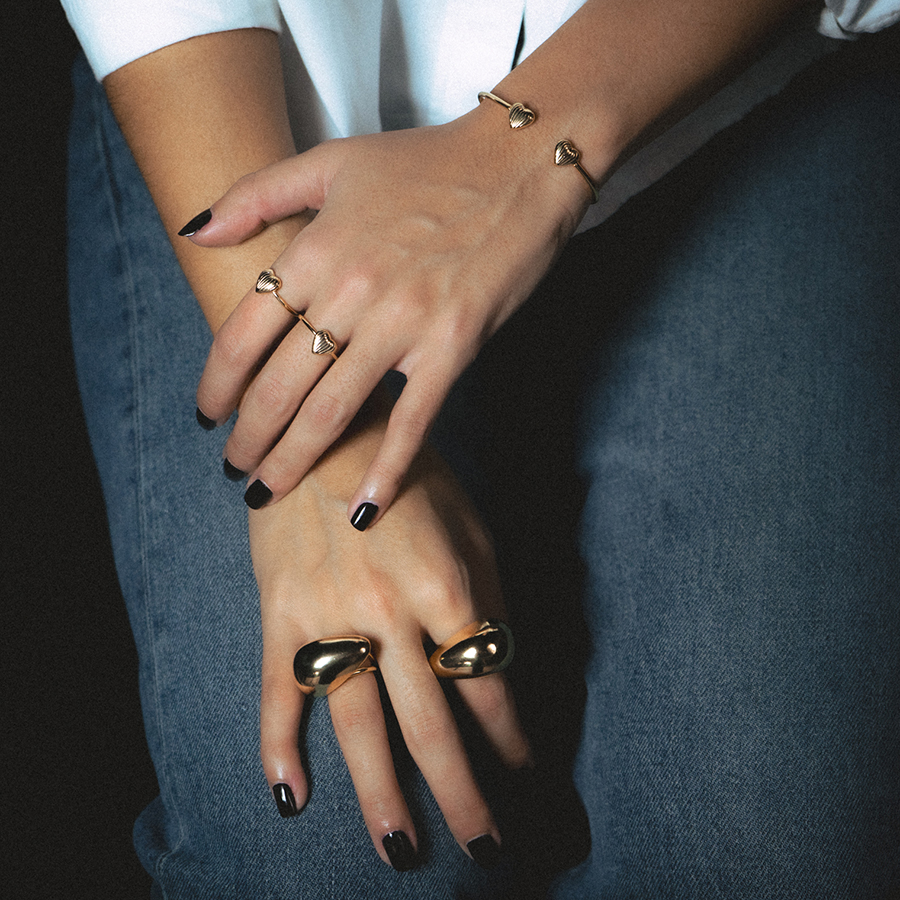Anillo grueso con corazón de textura, elaborado en plata con baño de oro